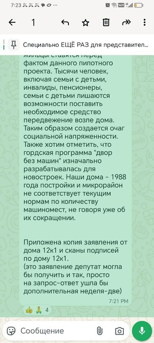 Сейчас жители шести домов, ощутившие себя подопытными мышками, продолжают отсылать в разные инстанции наполненные ранимой эмоциональностью прошения, смысл которых сводится к тому, что реализация этой программы в том виде, в каком она задумана применительно к микрорайону, просто оставит огромное число жителей без реальной возможности пользоваться собственной машиной. А групповой чат, созданный специально для оперативного обмена информацией по проблеме, наполнен криками души.
