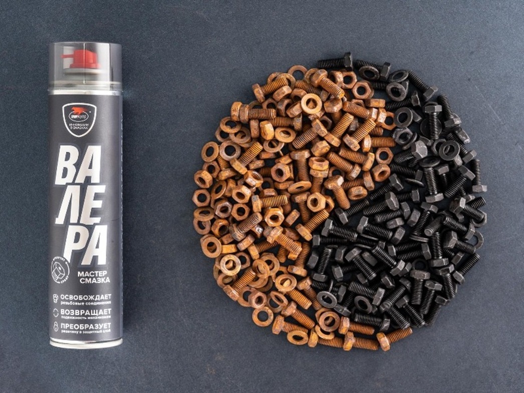В составе мастер-смазки «Валера» есть специальный модификатор ржавчины, благодаря которому средство не просто смазывает соединение, а преобразует ржавчину в защитный слой. В составе нет ни кислоты, ни керосина, поэтому за пластик и резину можно не беспокоиться.
