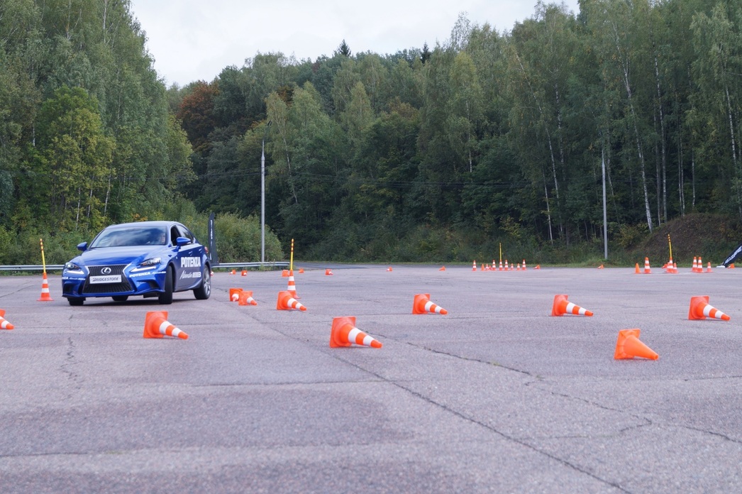 То ли дело – закрытый автополигон, как в нашем случае, где хоть обкатайся, отключив систему стабилизации и стерев до дыр перчатки. Под стать агрессивному характеру покрышек, в них справедливо обернули колеса «горячих» Volkswagen Golf GTI и Lexus IS 250 F Sport. Самое время опробовать шины в деле, тем более, что испытания усложнил моросящий дождь.