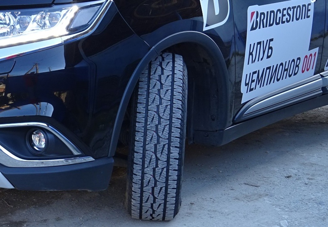 Следующий тест был организован на бездорожье. В роли помощника — полноприводный рамный «проходимец» Mitsubishi Pajero Sport. На что же способна новая универсальная летняя покрышка Dueler A/T 001?