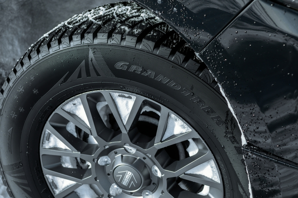 Еще одна интересная особенность — V-образное расположение и строение блоков протектора, которые по задумке разработчиков должны обеспечить хороший контакт автомобиля на снегу и тем самым увеличить его проходимость. От себя добавлю, что на «катках» Dunlop Grandtrek ICE 03, Land Cruiser 200 и впрямь великолепно гребет по снежной целине.