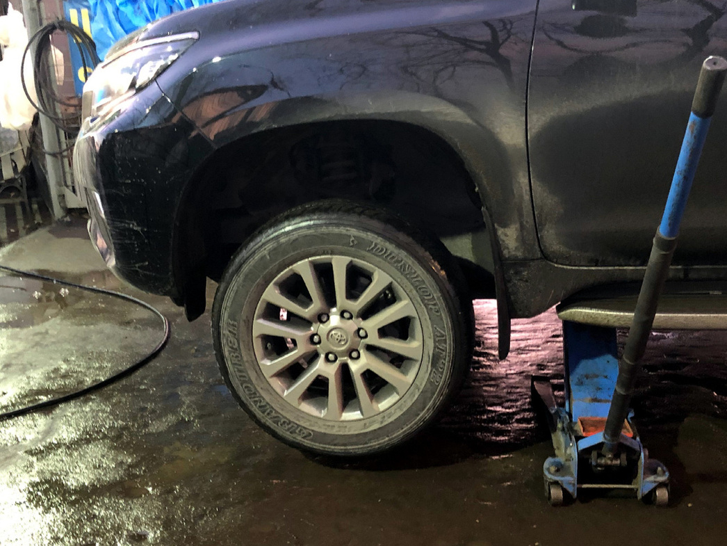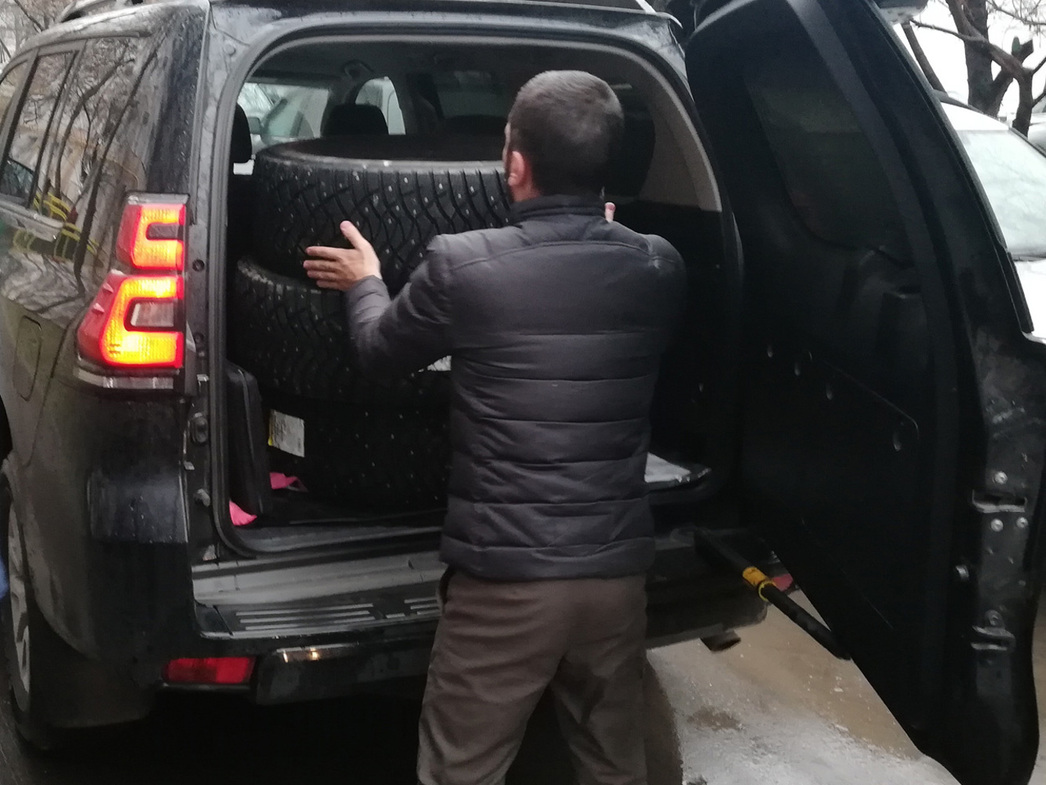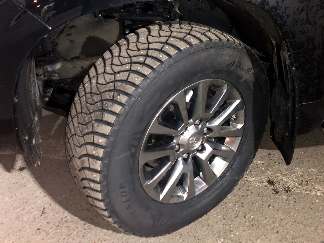 Загружаем Grandtrek Ice 03 в багажник Toyota Land Cruiser Prado и едем в ближайшую шиномонтажку. Штатная всесезонная «обувь» для этого «японца» имеет размерность 275/60R18. Нам же предстоит надеть более широкую резину — с 285-м профилем. Новая резина садится на диски легко и непринужденно, даже несмотря на то, что покрышки с довольно жестким кордом (индекс нагрузки на нашей резине — 116t, то есть каждый баллон рассчитан на 1250 кг живого веса и легко выдержит не то что Prado, но и гораздо более тяжелый внедорожник).