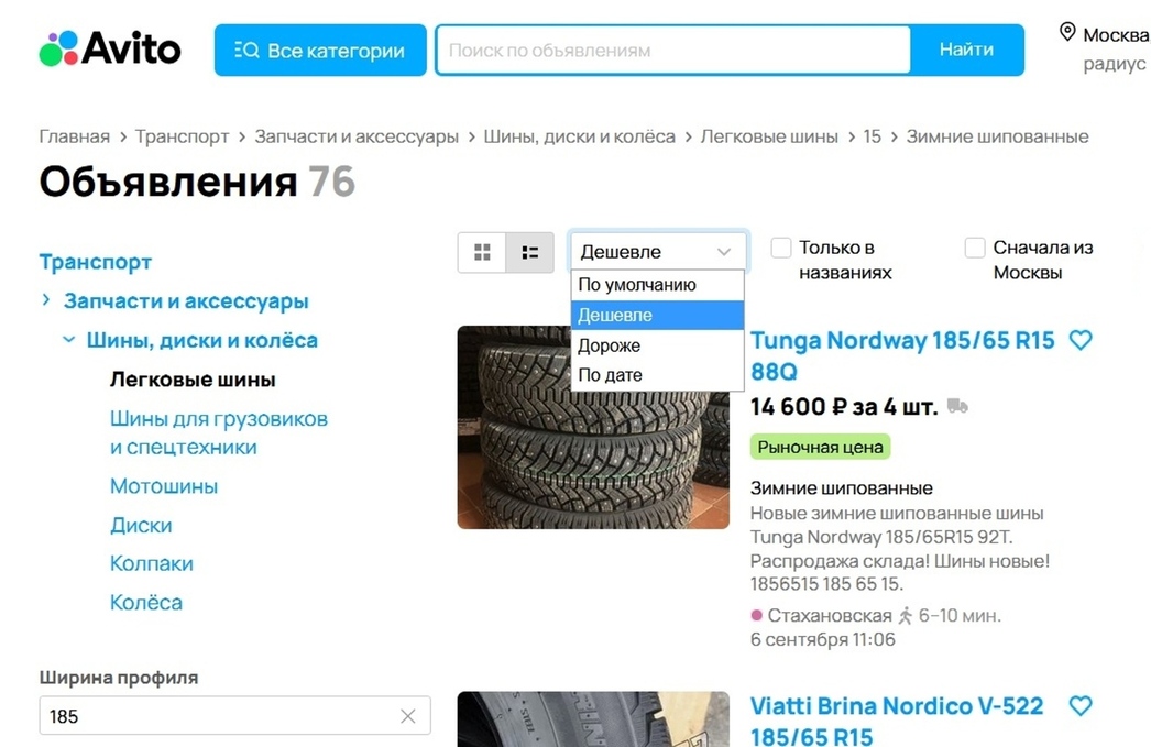Следует также заметить, что на Авито сильно снижен шанс переплатить за колеса. Для примера скажем, что новую резину распространенных типоразмеров тут можно приобрести по цене от 3200 за шину. Устройство платформы позволяет покупателю легко узнать цену на нужный ему продукт не только в одном конкретном магазине, но быстро и легко сравнивать ее с прайс-листами на ту же самую покрышку в десятке-другом конкурирующих организаций и у частных продавцов. Всем им волей-неволей приходится использовать адекватные прайс-листы, не пытаясь их завышать, — благодаря жесткой конкуренции. Кстати, покупатель может применить простой прием: настроить поисковую выдачу показывать объявления в подходящем по бюджету диапазоне цен.