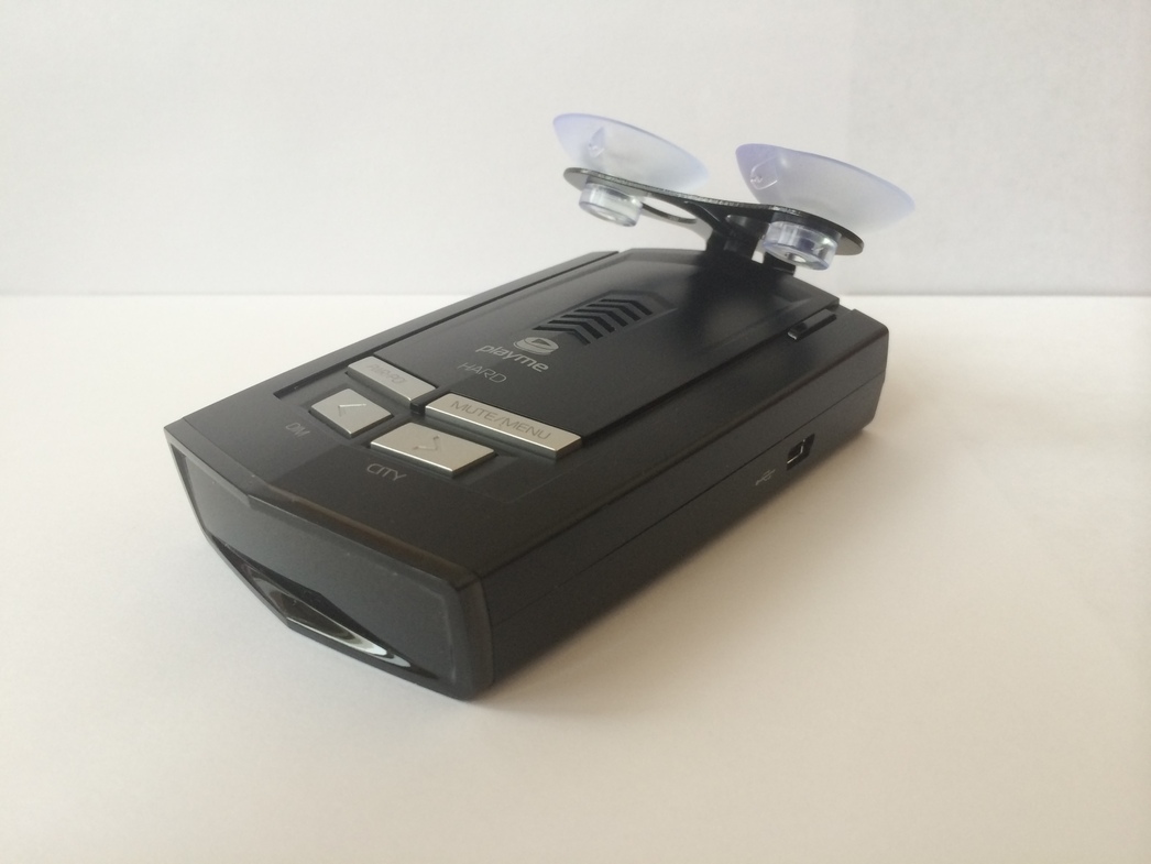 Теперь же поговорим о самом продукте. В принципе, ничего принципиально нового Playme тут не предлагает. Hard — типичный «антирадар», выполненный в традиционном формате. Собран он, кстати, крепко, ничего не люфтит и не шатается, пластик тоже неплохой, не скрипучий… Но лично мне показалось, что он слишком легкий. Если пользоваться входящими в комплект присосками, это — огромный плюс, ибо моя Cobra регулярно падает со стекла вместе с креплением. Однако я предпочитаю использовать не штатный кронштейн, а силиконовый противоскользящий коврик. Так вот, Cobra сидит на нем, как влитая даже в сильный мороз, Playme же соскальзывает на первом же повороте. Есть вопросы и к длине провода питания.
