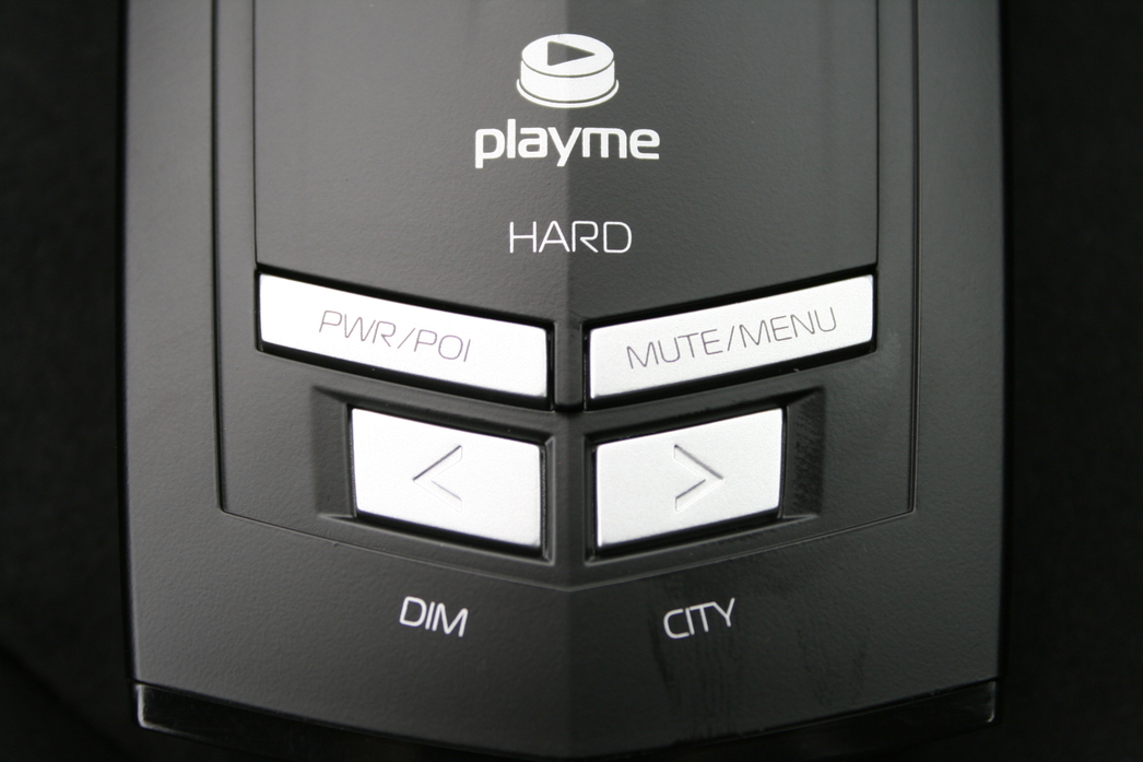 Форм-фактор нового радар-детектора Playme HARD – классическая плоская черная «коробочка» с дисплеем на одном торце и «глазком» приемника лазерного излучения на другом. На верхней панели устройства разместились четыре кнопки управления. За вполне подъемные 6000 рублей он радует сильно расширенным функционалом, по сравнению с предшественником. В частности, оповещает о всех применяемых на сегодняшний день полицейских системах контроля скорости. При этом работа таких стационарных и мобильных радарных комплексов как «Кордон», «Крис», «Кречет», ПКС-4, «Рапира-1», РОБОТ, «Арена», «Mesta», а также популярной «Стрелки» засекается им на дистанциях 600-1000 метров. С учетом особенностей ландшафта, разумеется. Это – заслуга самой свежей «прошивкиой» процессора радар-детектора. Ее, кстати, можно обновлять, скачивая с официального сайта производителя. Не излучающие ничего комплексы контроля скорости «Автодория» засекают время прохождения машины по отрезку трассы между двумя видеокамерами и вычисляют по нему среднюю скорость. Playme HARD оповещает и о них, благодаря встроенному GPS-модулю и хранящейся в памяти устройства базе данных с координатами «Автодорий». Главное, чтобы автовладелец регулярно обновлял их через интернет. При обновлении базы данных не лишним будет обновить и прошивку устройства. Для подключения к компьютеру с боковой стороны устройства предусмотрен USB-разъем, а в комплекте поставки – соответствующий кабель. Войдя в логичное и интуитивно понятное меню «антирадара», можно запрограммировать, на каком расстоянии от полицейской камеры HARD будет женским голосом оповещать владельца.