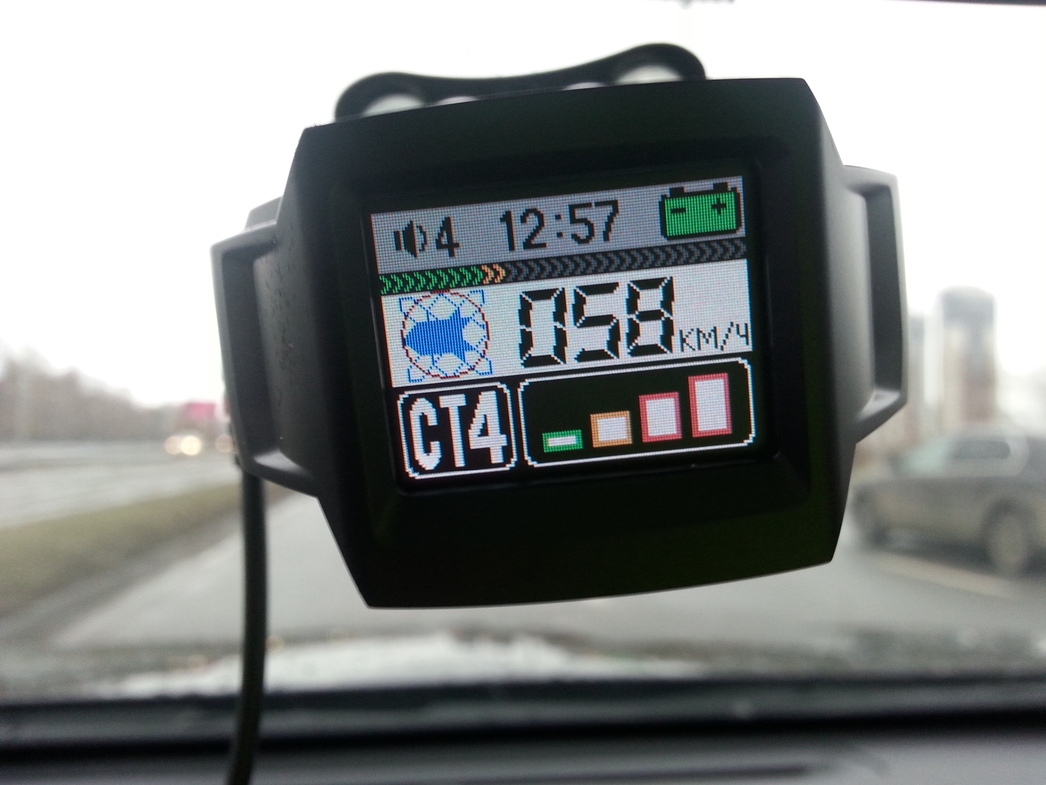 Для сигнализации о работающей впереди камере вполне хватит лишь звукового сигнала. Если захочется подробностей, достаточно бросить взгляд на монитор. Там тебе покажут и тип камеры, и расстояние до нее в метрах, и, если включен режим индикации сигнала полицейского радара, еще и «пеньки» уровня интенсивности облучения твоей машины. Именно в упомянутом выше режиме «приоритет радара», детектор раскрывает хозяину максимум информации о каждой встречной камере. Во первых, сразу становится ясно, включена ли она в данный момент: если на экране мигает название типа камеры и расстояние до нее, а индикации уровня радиосигнала нет, значит комплекс автоматической фиксации на самом деле выключен. А когда на экран выводятся и «пеньки» сигнала, и тип комплекса автоматической фиксации, и дистанция до нее – камера впереди по курсу активна.
