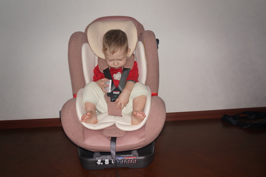 Во-первых, оно крепится безальтернативно с помощью IsoFix, которые в нашей машине есть только на задних сиденьях. А мы с Сашкой любим сидеть впереди, болтать, играть в ладушки и обсуждать пейзаж за окном, не говоря уже о том, что ребенка, сидящего рядом, намного проще успокоить и дать ему нужную вещь. По этой же причине «Курутто» теряет баллы за недостаточную универсальность.