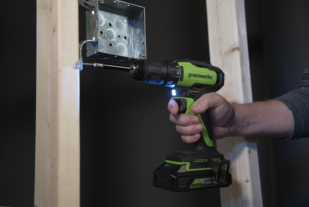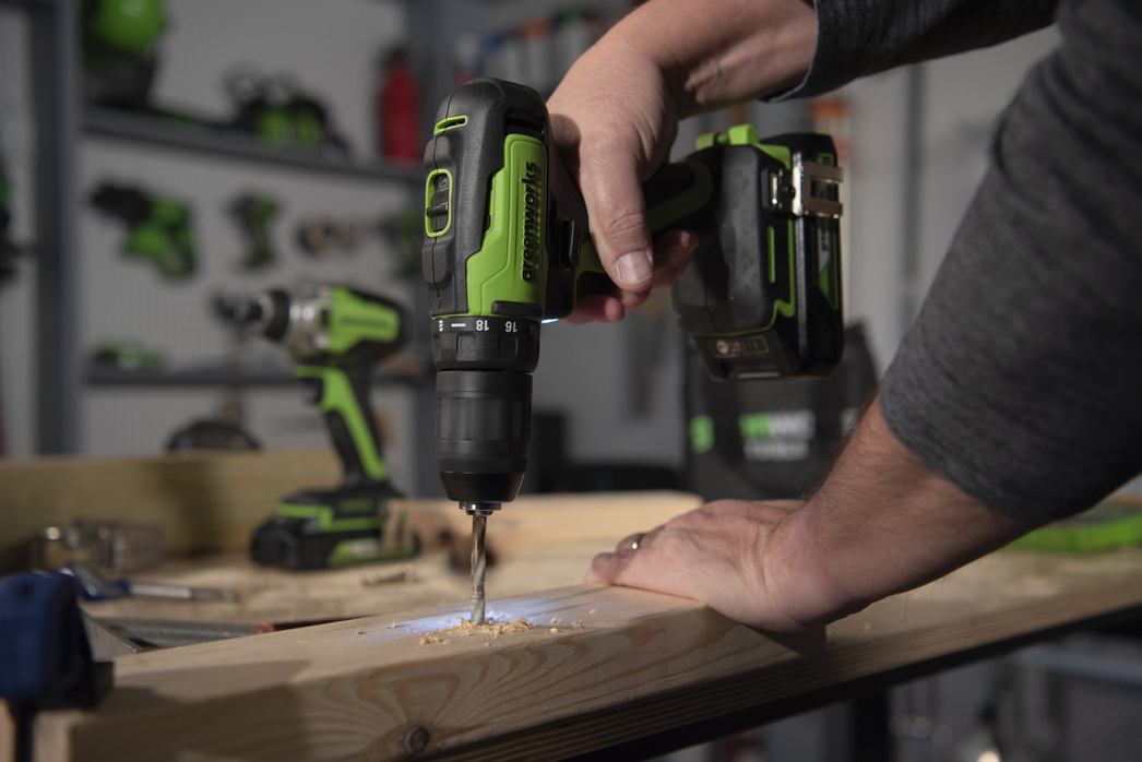 Многие рекомендуют обратить внимание на ручной инструмент Greenworks, который будет отличным помощником не только во время ремонта, но и в повседневных заботах по дому. Аккумуляторная дрель-шуруповерт Greenworks GD24DD35 — модель с новейшим бесщеточным двигателем. Предназначена для сверления без удара и закручивания/откручивания шурупов. На корпусе дрели есть светодиодная подсветка рабочей зоны, что удобно в работе при плохом освещении. Инструмент работает в 2-х диапазонах скоростей. Корпус выполнен из ударопрочного пластика, рукоятка имеет прорезиненное покрытие и удобную форму + небольшой бонус в виде фиксатора для ношения на ремне.