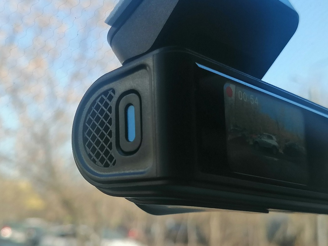 Сам гаджет также настолько небольшого размера, что вполне может целиком спрятаться за салонным зеркалом заднего вида. Один лишь провод будет напоминать о его существовании. Но при этом всегда можно легко снять регистратор со стекла и забрать с собой, если вы опасаетесь привлечь внимание воров и обнаружить свою машину с разбитым окном.