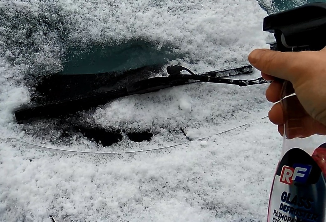 Это средство, которое поставляется на наш рынок в пластиковых флаконах с удобным «пистолетным» распылителем, специально разработано для удаления инея или льда со стекол, наружных зеркал и фар автомобиля. Обработав таким препаратом замерзшие стекла, можно быть уверенным, что лед с них будет удален очень быстро.