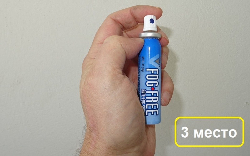 Наконец, почетное третье место досталось еще одному иностранному антизапотевателю со звучным названием Viсtor (США). Выпадение конденсата на контрольном образце стекла, обработанного этим американским спреем, понизило уровень освещенности на 17%.