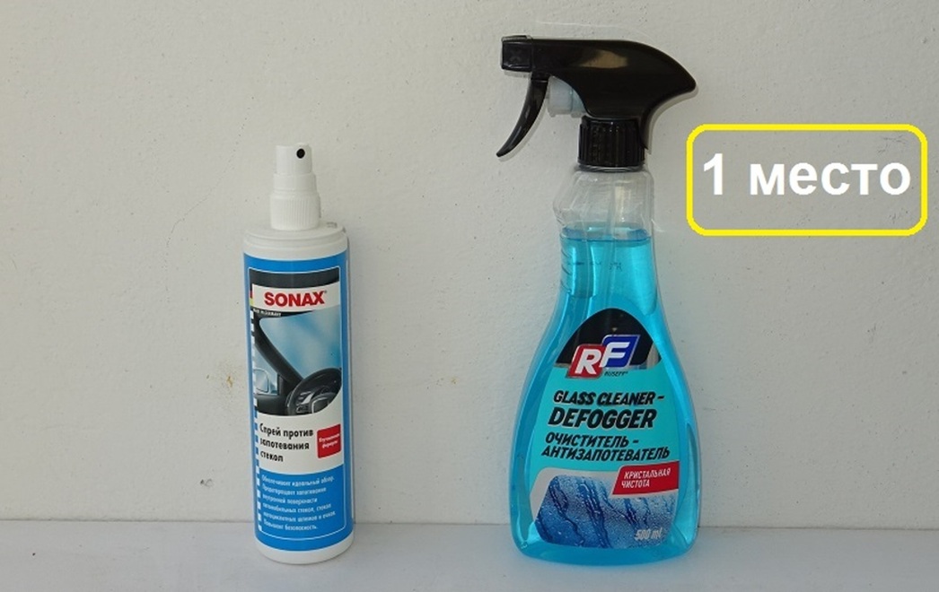 Отметим, что спрей от Ruseff позиционируется производителем как универсальный продукт, совмещающий очиститель и антизапотеватель в одном флаконе. В случае же применения спрея Sonaxлобовое стекло придется сначала очистить от пыли и жира. А для этого надо иметь под рукой еще одно средство.