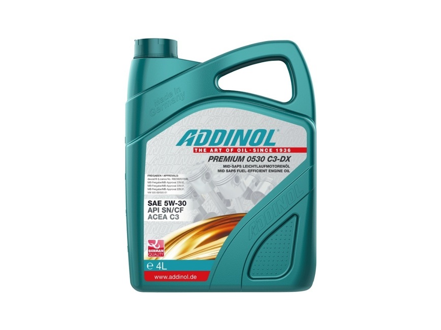 Все смазочные материалы под брендом Addinol поступают в Россию с единственного завода, расположенного в восточногерманском городе Лойна. Компания специализируется на смешивании смазок из закупаемых у поставщиков базовых масел и пакетов присадок. Более половины всего объема выпускаемой продукции экспортируется. Моторные масла бренда имеют допуски SAE, API, ACEA, а также одобрение Mercedes, Audi, BMW.