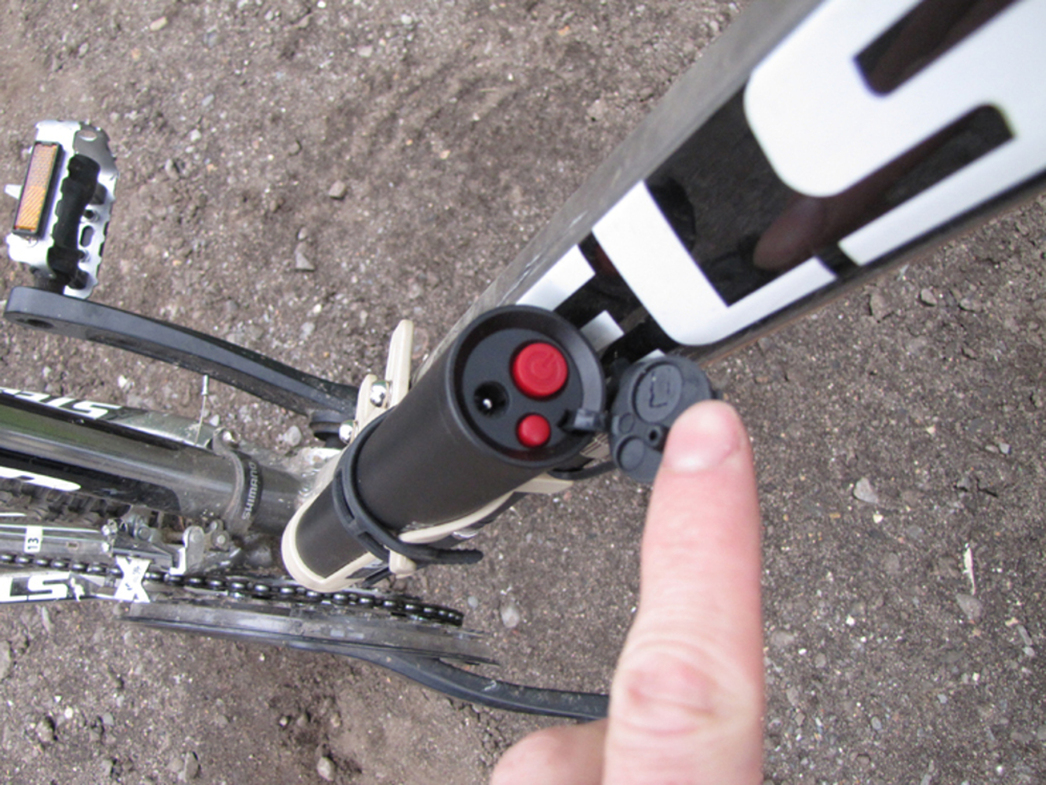 На шланге имеется механический манометр, благодаря которому вы можете не на ощупь определять степень накачки шин велосипеда, а что называется с помощью точного прибора. На конце шланга стоит фитинг под колесный клапан (в простонародье «сосок»). На самом деле фитинга там два, один накручен на другой: такая конструкция позволяет использовать компрессор для накачки шин с «сосками» разных стандартов.