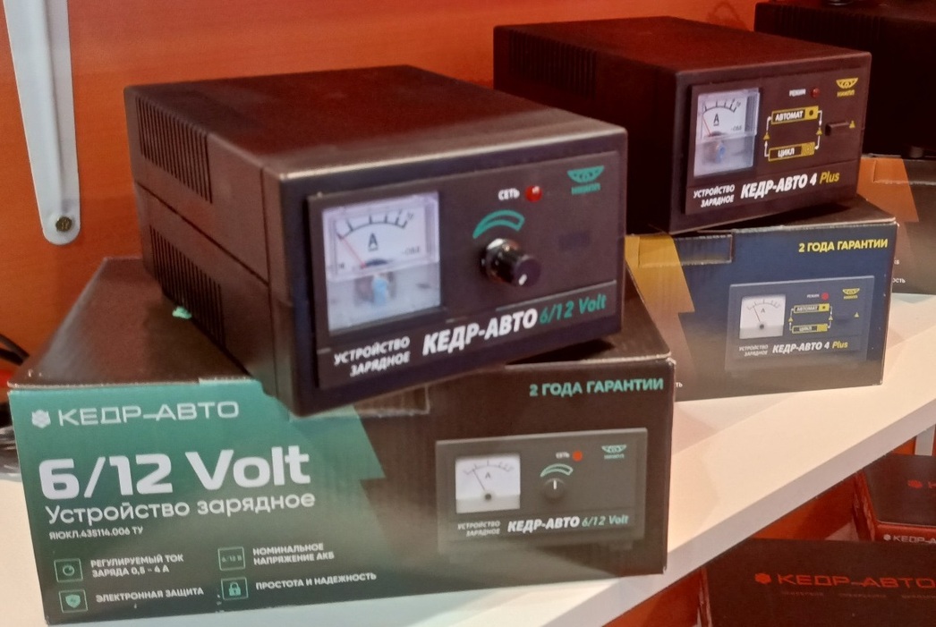 Так, большой интерес автолюбителей вызвали зарядные устройства серии «Кедр-Авто», разработанные инженерами томского Научно-исследовательского института полупроводниковых приборов (АО «НИИПП»). Эта организация входит в госкорпорацию «Ростех» и ныне является одним из ведущих предприятий электронной промышленности России.