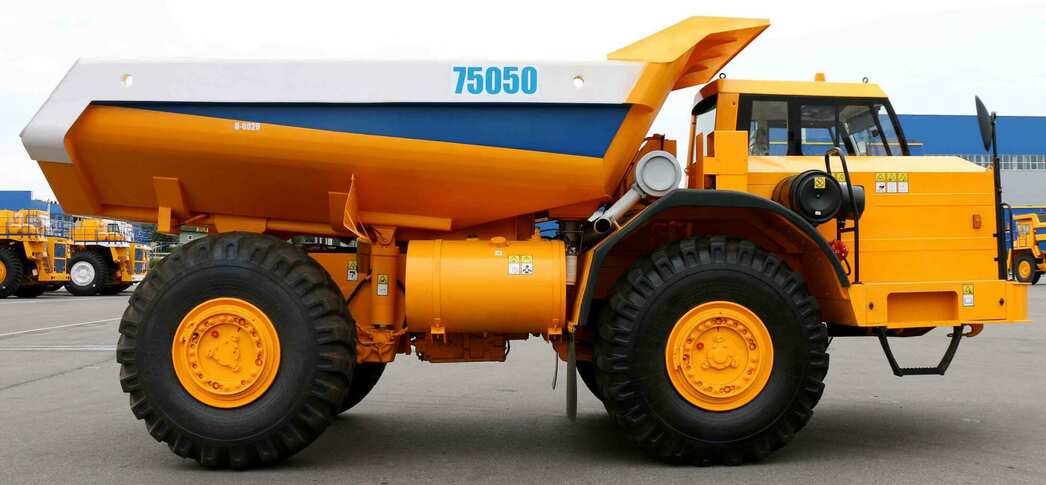 Новый самосвал-землевоз снаряженной массой 20 тонн имеет колесную формулу 4х4. Он не предназначен для движения по дорогам общего пользования из-за ширины в 2,83 метра. В кузов помещается 1,5 кубических метра земли или породы.