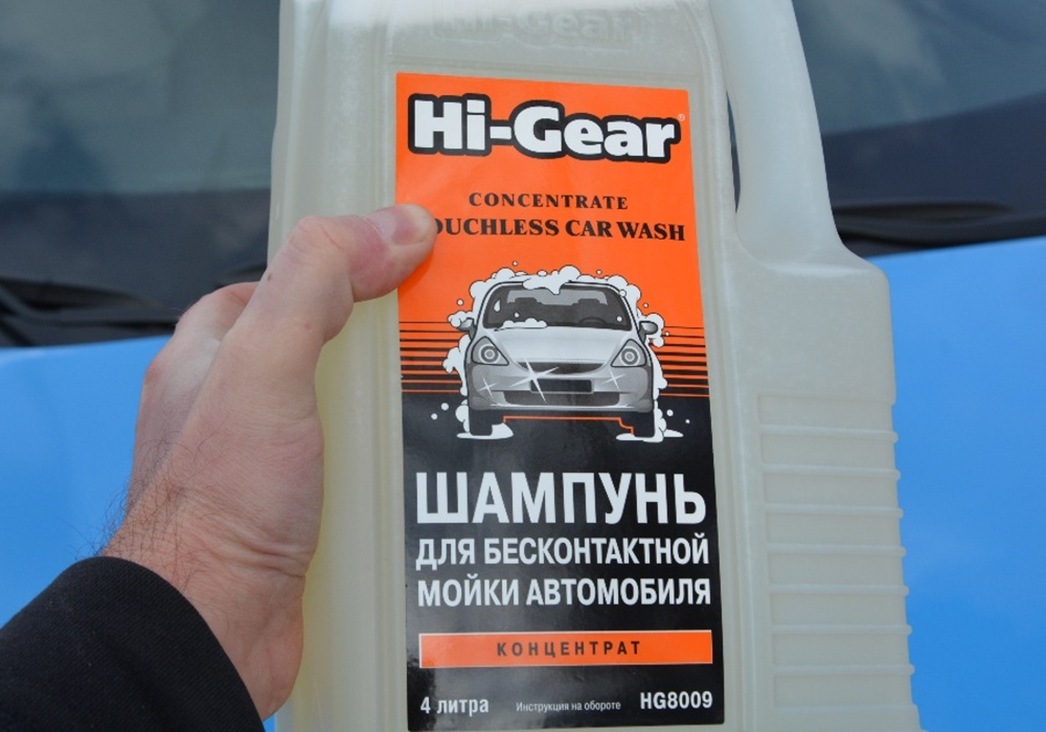 Если мы говорим о бесконтактной мойке, то в качестве примера автошампуня для нее можно использовать препарат от американского бренда Hi-Gear HG8009. Его активная пена оперативно и надежно ликвидирует самые стойкие загрязнения с наружных поверхностей автомобиля. Он легко смывается водой, не оставляя разводов и подтеков. Также имеет смысл обратить внимание на универсальные моющие средства — скажем, «Шампунь-кондиционер» DoctorWax DW8102. Образуемая им пена с полимерными добавками препятствует контакту частичек грязи и песчинок с краской, что уменьшает вероятность появления микроцарапин в ходе мойки не только на самом ЛКП, но и на слое полироля, которым оно может быть покрыто.
