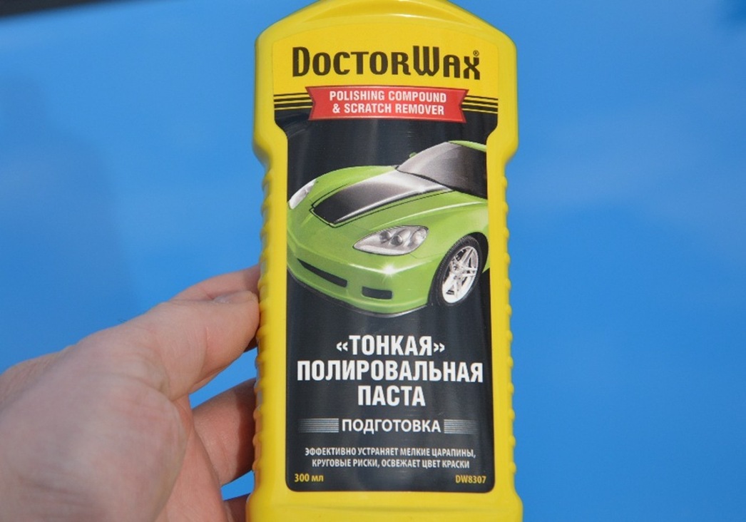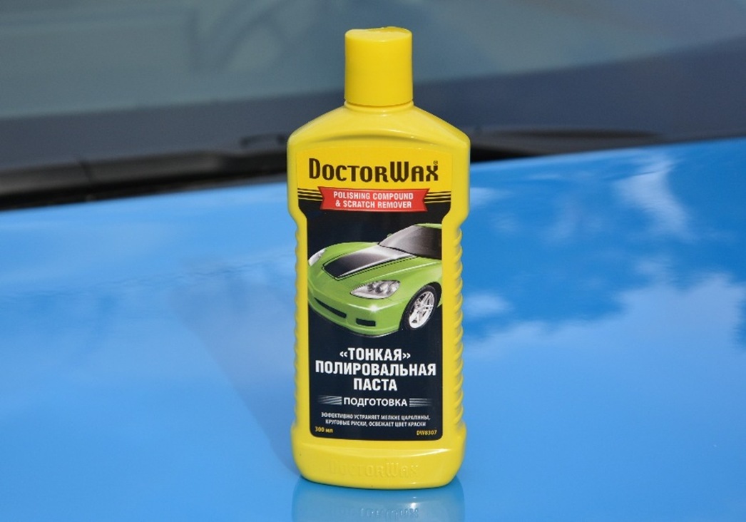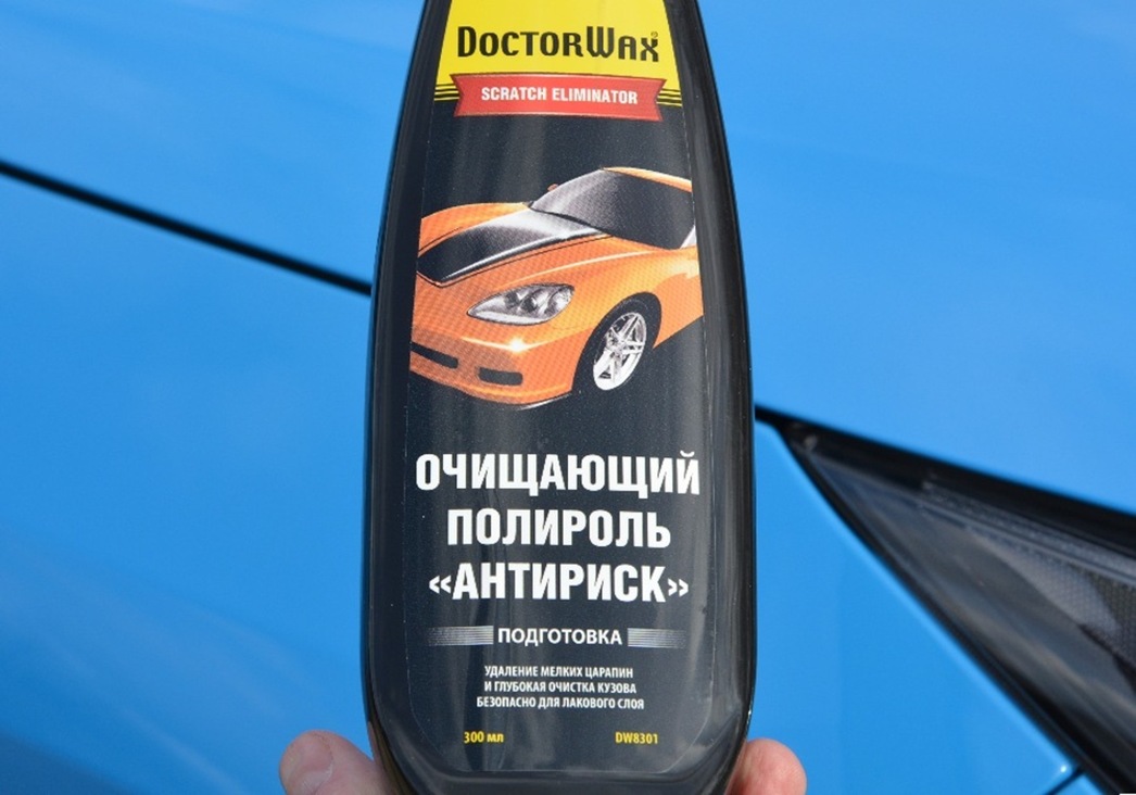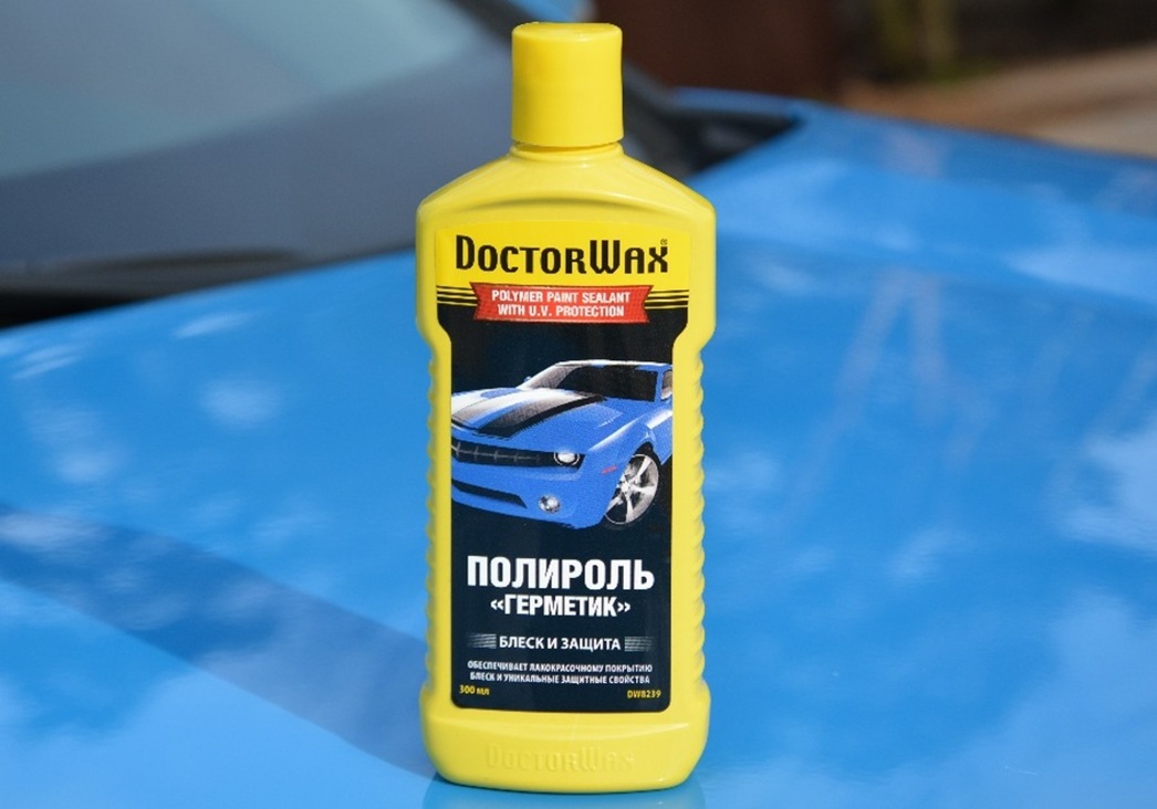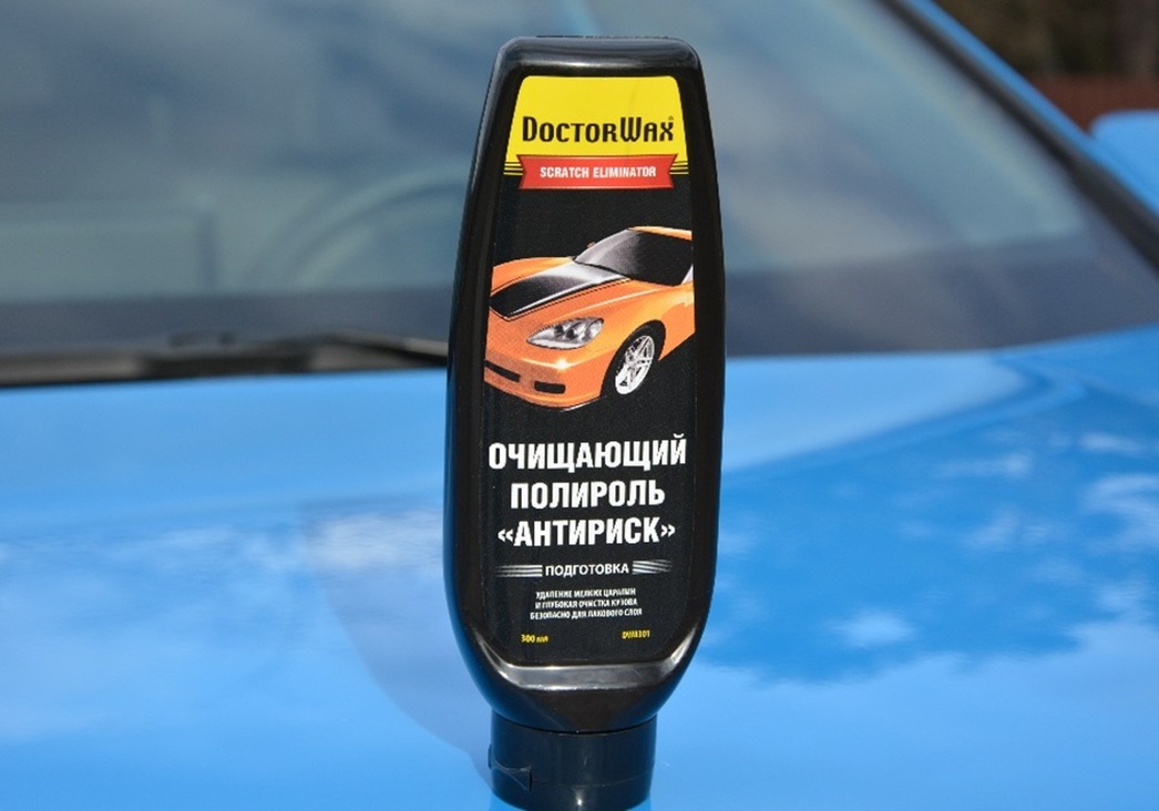 Если вы никогда не полировали кузов своего авто, то перед нанесением защитного полироля-герметика рекомендуется «пройтись» по кузову каким-нибудь «антицарапином» или абразивным полиролем, таким как DoctorWax DW8307. Эта полировальная паста удаляет окислившийся поверхностный слой краски, в котором присутствуют мельчайшие дефекты покрытия — царапины, въевшиеся следы от насекомых, древесная смола и прочее.