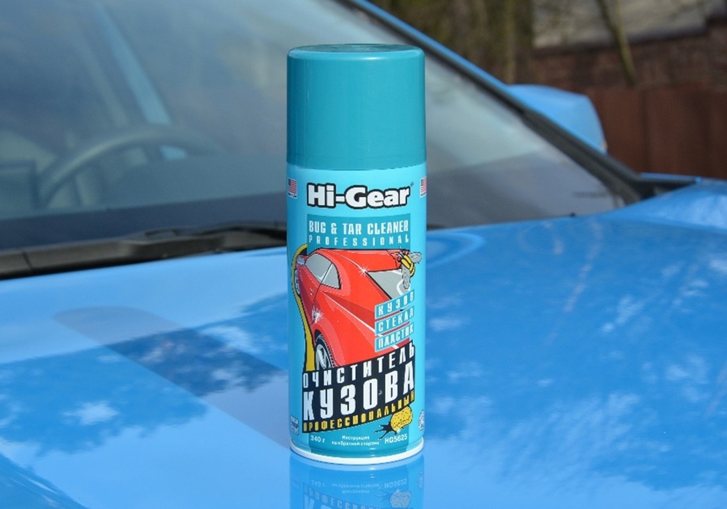Надо сказать, что для удаления серьезных, въевшихся загрязнений приходится применять специальные мощные очистители местного действия. На автомойках их практически никогда не используют. Ведь для того чтобы такие спецсредства были эффективны, им следует давать некоторое время поработать, а не смывать, как пену шампуня, почти сразу. Против въевшихся пятен от насекомых, клякс птичьего помета или битума применяют спецсредства типа Hi-Gear HG5625. Распыляем состав на загрязненный участок и ждем минут пять, пока химия «разделается» с трудновыводимой грязью. И только потом протираем чистой тканью и промываем водой ставшее чистым ЛКП.