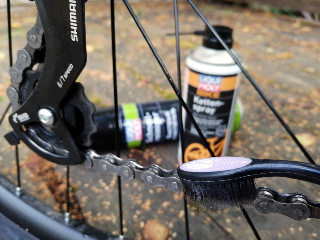 Но прежде, чем смазывать цепочку, ее необходимо к этому подготовить, то есть очистить от старого лубриканта, перемешанного с пылью и песком. Сделать это можно с помощью очистителя цепей велосипеда Bike Kettenreiniger. Специальная комбинация растворителей на нефтяной основе, входящая в состав продукта от Liqui Moly, быстро разъедает загрязнения, очищает детали от смол и смазок, обладает отличным проникающим действием, моментально испаряется и не оставляет следов. Использование этого очистителя цепи велосипеда помогает впоследствии цепным смазкам работать на чистой поверхности, облегчая вращение педалей и существенно продлевая срок службы самой приводной цепи.