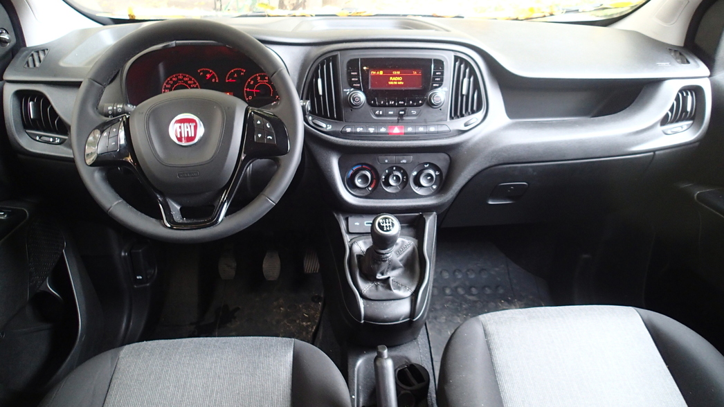 Медиасистема также управляется двумя «шайбочками» и аналоговыми кнопками, и это действительно удобно. К счастью, здесь не придется искать USB-порт, как у некоторых конкурентов: в FIAT Doblo он вместе с гнездом AUX выведен на площадку рядом с рукояткой коробки передач. В длительном путешествии всегда пригодятся разнокалиберные ниши для мелочей на торпедо, вместительные карманы на внутренних панелях дверей, а также огромная полка под потолком над лобовым стеклом.