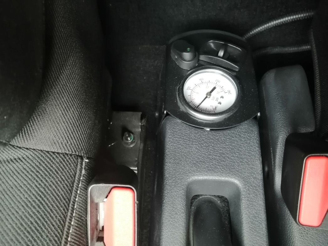 Паспортная грузоподъемность — 650 кг. При этом разработчики утверждают, что машину можно спокойно грузить 750 килограммами. Конструкция позволяет. Дело в том, что задняя подвеска LADA Granta KUB — рессорная с пневмобаллонами регулируемого давления. Причем управление процессом накачивания и стравливания лишнего воздуха из «пневмы» организовано из салона машины. Тут между сиденьями смонтирована коробочка с манометром и парой кнопок. Судя по ее виду и звуку во время работы, это устройство — ближайший родственник банального поршневого компрессора для подкачки шин. Решение не эстетичное, не технологичное, ни разу не инновационное, но, блин, рабочее!