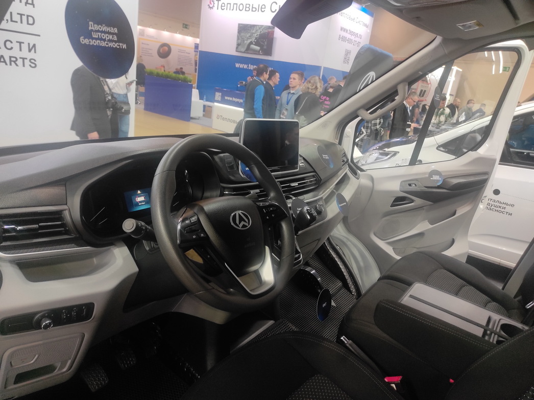 Кроме него, на выставку привезли 8-местный минивэн на его базе, а также электрическую версию полной массой 3,5 т. Последняя оборудована электродвигателем мощностью 130 кВт и литиевой батареей мощностью 100 кВт. Доступно два режима зарядки: быстрый — за 40 минут и стандартный — за 5,5 часов. Дальность хода на одной зарядке составляет, как утверждает производитель, до 300 км.