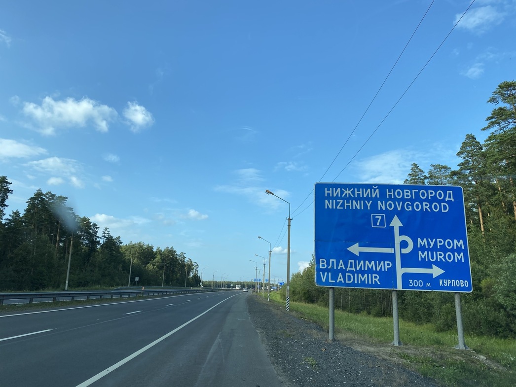 Короче говоря, заправиться, опростаться и подкрепиться рекомендуем до съезда с М7 на Муром, поскольку дальше АЗС хотя и встречаются, но почти все и без интернета, и без воды (а значит — и без туалетов, и без еды/напитков). Сама магистралька просто шикарная, хотя километров за 60 до города резко портится: настолько, что то и дело встречаешь кресты на обочинах.