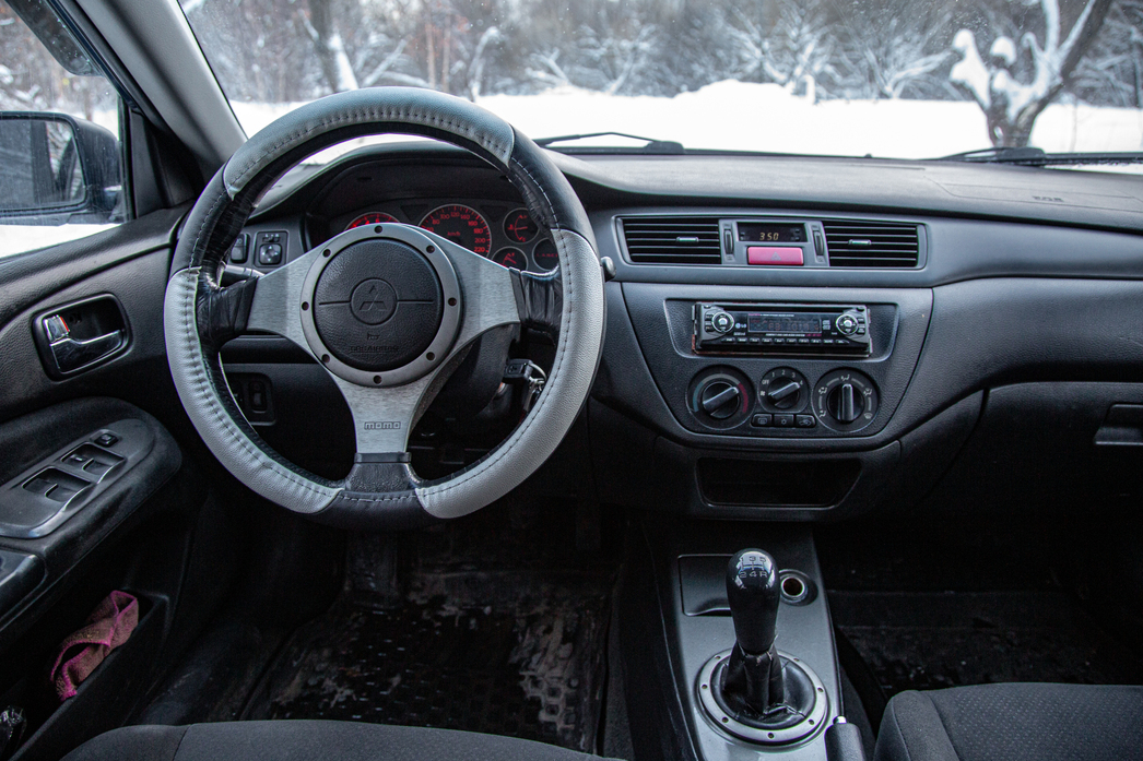 В салоне дела не лучше: только необходимые опции вроде стеклоподъемников и кондиционера, «крутилки» и фирменные кнопки Mitsubishi, дошледшие и до наших дней, простецкий пластик и довольно неудобный руль. Красивую «баранку», пера небезызвестного ателье Momo, что так же ставилась на Evolution, можно было получить, переплатив за двухлитровый мотор. «Музыку» покупатель инсталлировал самостоятельно — магнитолы не предусматривалось даже в дорогих версиях.