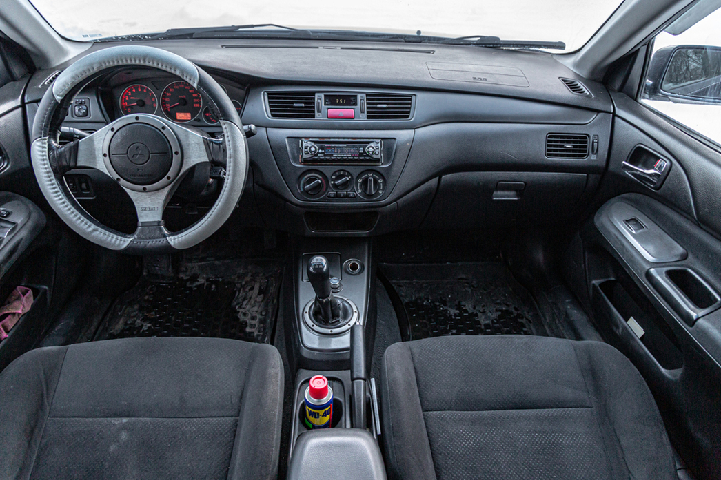 ГУР не гудит и не закусывает — снова привет «Ниве» — а салон очень быстро прогревается. Кресла удобные, не чета современным «бюджетникам». Даром что делали их парни из Recaro, а «баранка» — вообще произведение искусства, перешедшая нашему «Лансеру» прямиком от старшего собрата Evolution.
