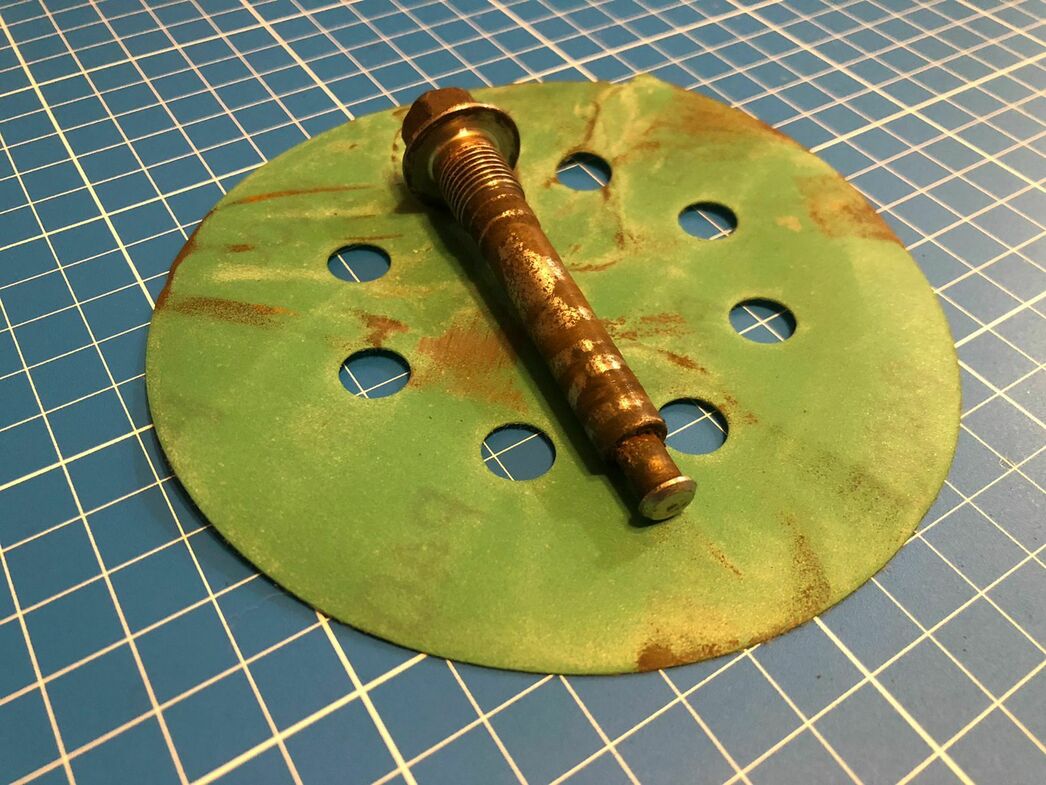 Для ускорения процесса, вставляем «направляшку» в патрон шуруповерта, рукой придерживаем наждачку и начинаем процесс очистки. О чудо: после пары сеансов и нескольких замен «полотна» на нашей шпильке появляются проблески, а после и абсолютно гладкая и ровная поверхность. Никаких раковин и следов воздействия коррозии нет, сверкающий металл и, как следствие, возможность дальше эксплуатировать направляющую. А это уже почти полторы тысячи руб. экономии на каждом суппорте.