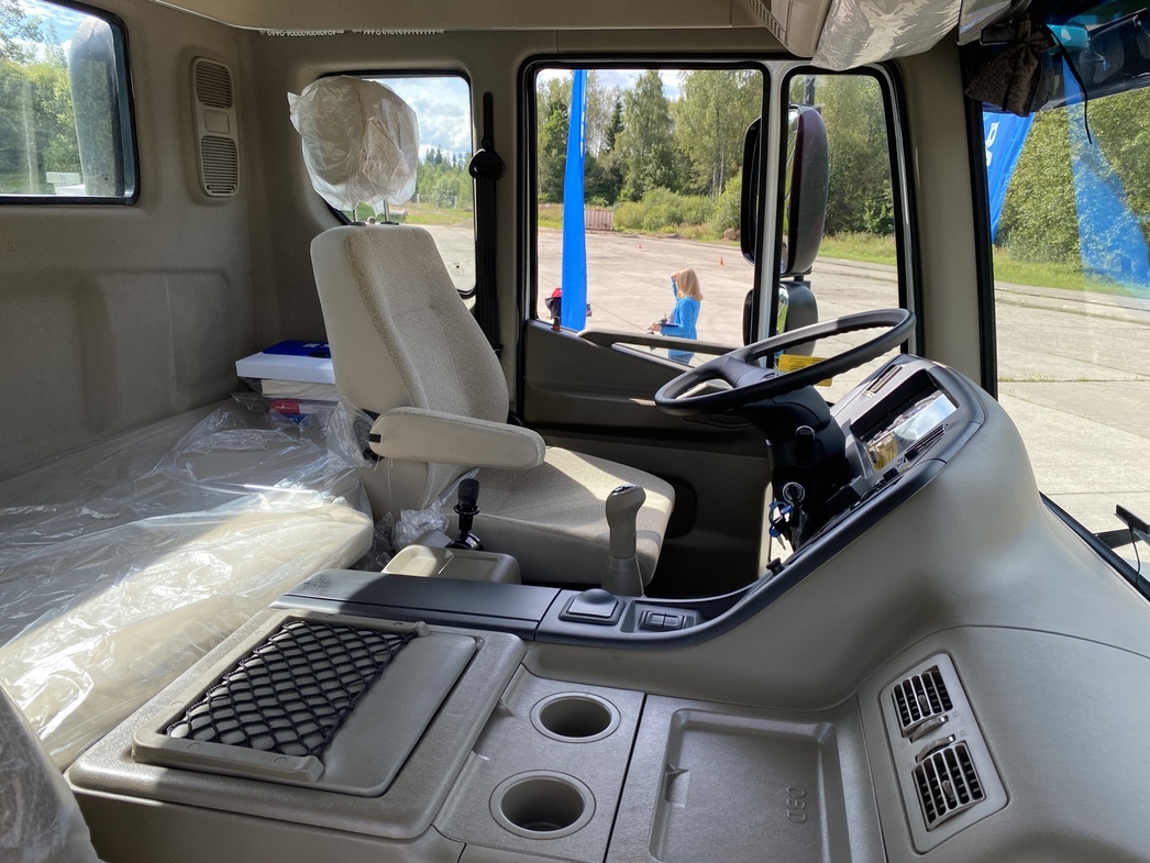 Из Набережных Челнов автомобиль едет дальше на запад, в Рязань, где ему имплантируют фургон-надстройку. И только после этого, отмахав около 10 000 километров, машина попадает на склад московского дилера, где на нее навешивают ценник. Скажем, 4-осный фургон-рефрижератор для компании Х5 стоит 12 000 000 рублей — за такие деньги можно без проблем купить пару новеньких тягачей КамАЗ-5490 NEO. А бортовой грузовик, оборудованный манипулятором — это уже 16 000 000.