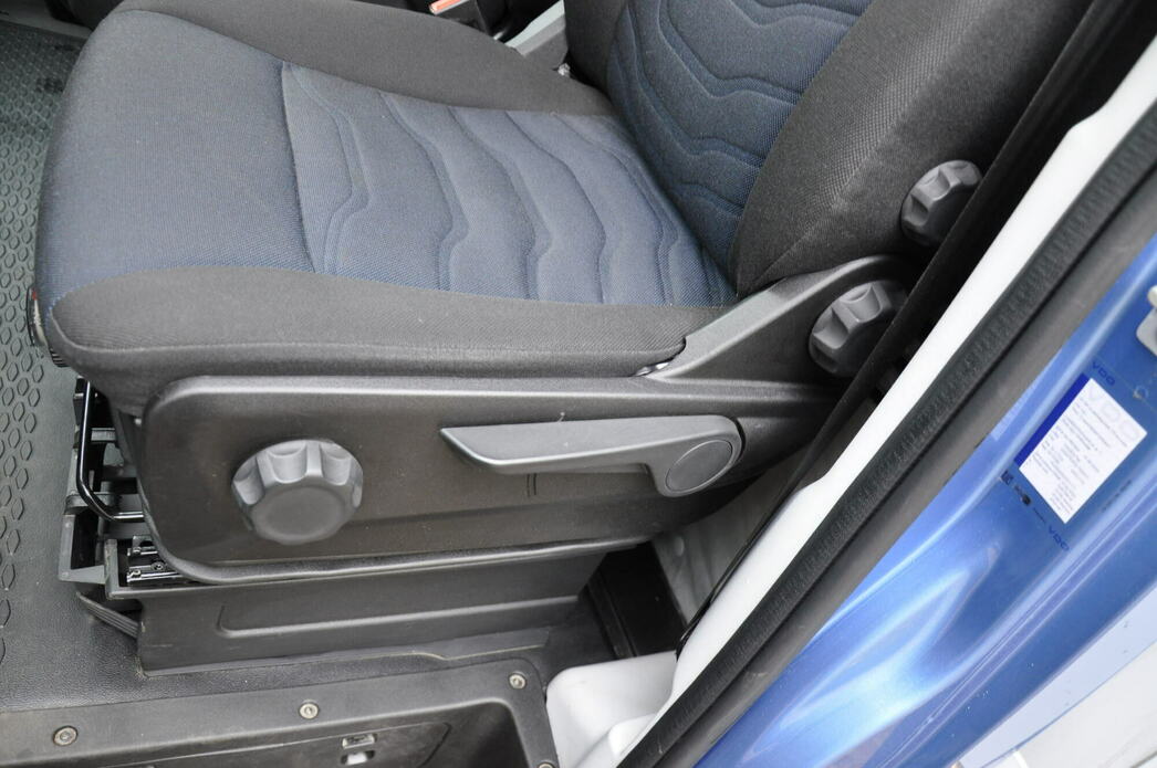 Открываю широкую дверь и сажусь в кабину. Она очень просторная. Тут три человека разместятся без проблем, и не будут упираться друг в друга локтями. Руль регулируется по вылету, а кресло можно подогнать по высоте. Его набивка очень плотная, а спинка расположена почти вертикально. Получается рабочая посадка без возможности вальяжно завалить назад спинку. Да того и не требуется. Вполне комфортно и так.