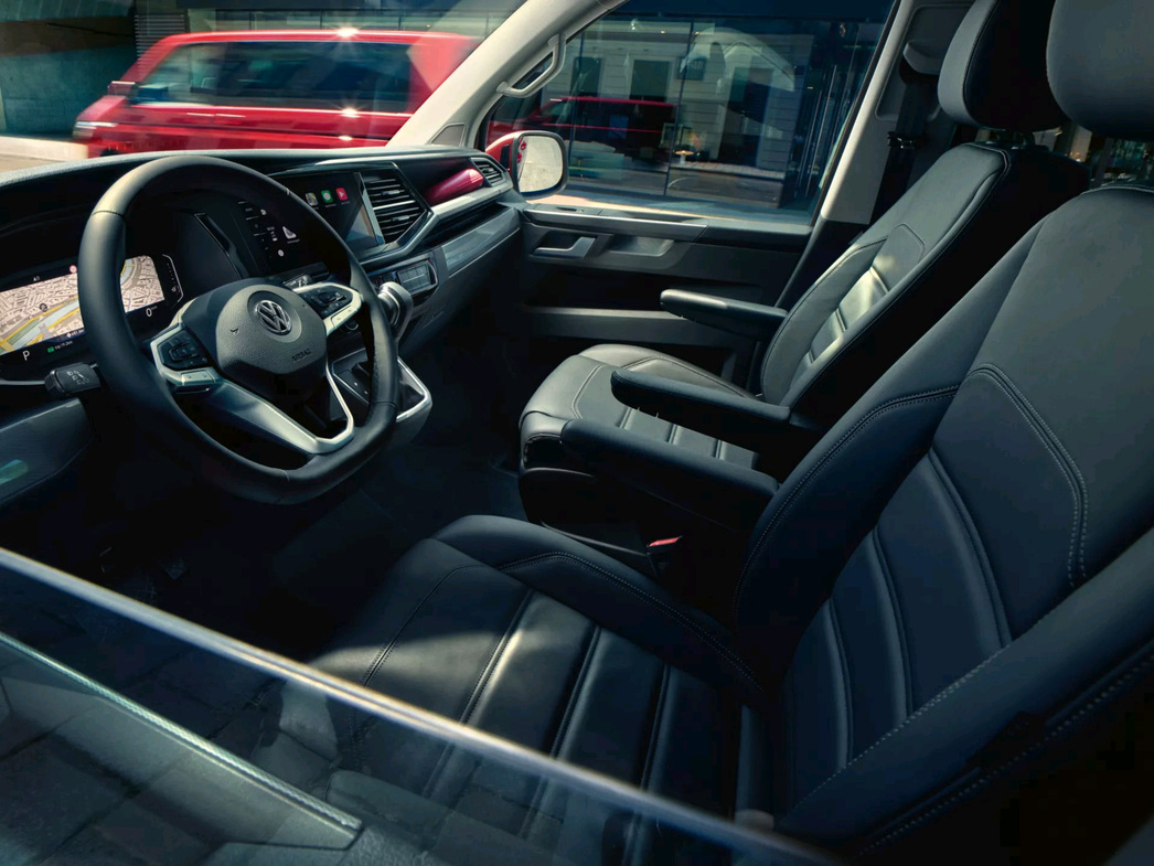 Радикальное отличие Т6.1 от своего предшественника Т6 — в его оснащении появилась целая россыпь самых разнообразных электронных помощников. Приборная панель стала полностью цифровой. В зависимости от комплектации, машина может распознавать дорожные знаки, автоматически стабилизировать курс при резком порыве бокового ветра, подсказывает водителю, куда крутить руль при маневрировании с прицепом. Кроме того, в арсенале есть даже парковочный автопилот. Пожалуй, это первый коммерческий автомобиль, напичканный самыми передовыми системами безопасности и разнообразными помощниками.