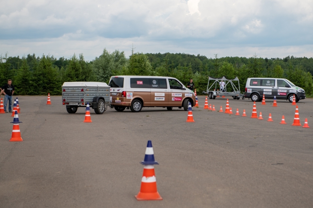 Несмотря на габариты далеко не как у легковушки, вэн весьма легок в управлении. Одно из испытаний, приготовленных в рамках мастер-класса — маневрирование с прицепами (маленьким дачным и огромным для перевозки яхты). Благодаря штатной камере заднего вида, подъехать фаркопом к прицепу не составляет труда. А огромные «лопухи» заднего вида помогают контролировать ситуацию вокруг.