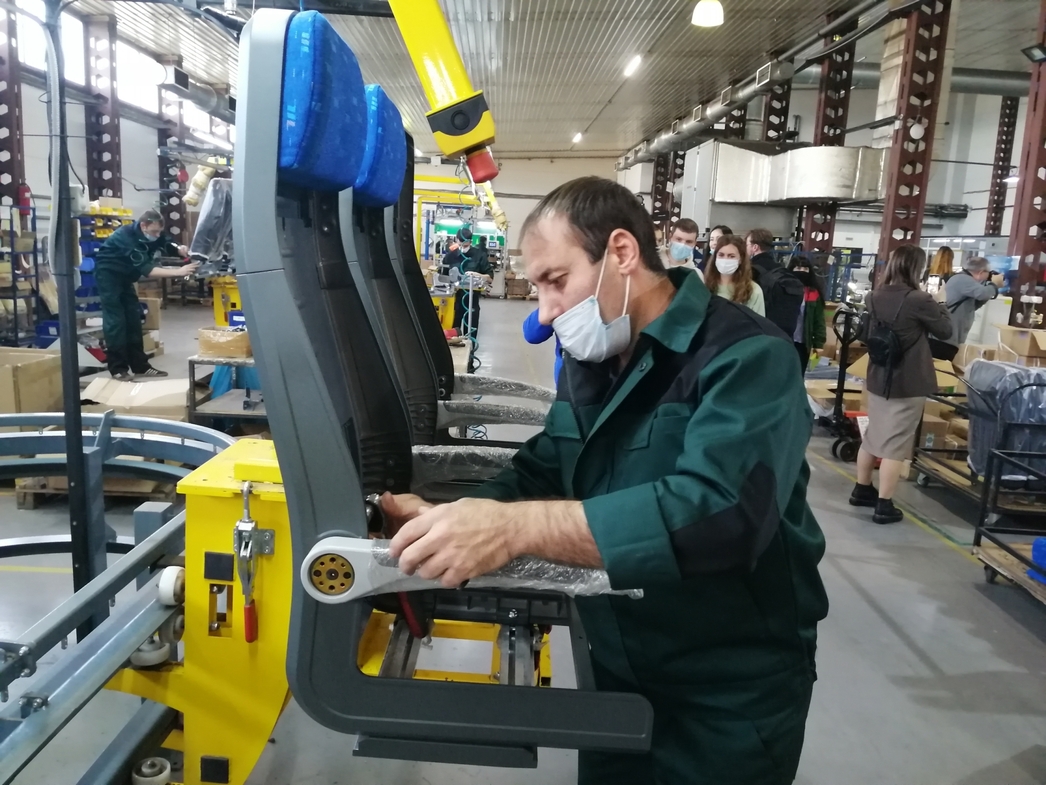 Когда портал «АвтоВзгляд» посетил завод, на конвейере делали партию кресел для поездов «Ласточка». А на складе готовой продукции ожидали отправки сиденья для тракторов и комбайнов.