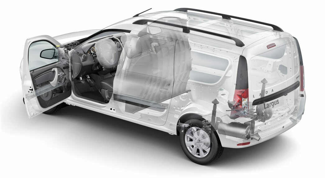 В общем, в плане техники, удобства и надежности «Ларгус» однозначно далеко ушел от «Гранты». Но надо понимать: коммерческая версия сделана из обычного универсала, поэтому форма грузового отсека далека от идеала — в частности, при размещении груза мешают колесные арки. А поскольку сзади стоят пружины, то максимальная масса поклажи составляет 600—700 кг (в зависимости от версии).