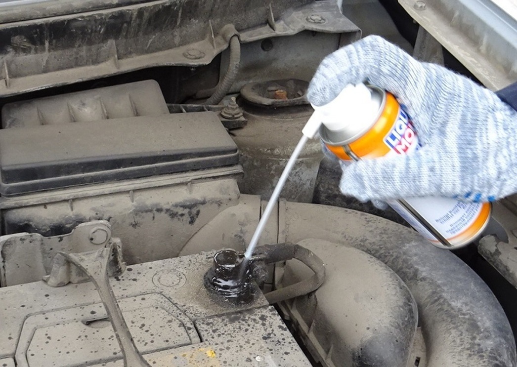 Нередко случается, что на стыке силовых проводов и клемм АКБ на них появляется коррозионный налет. Подобные дефекты также следует устранять немедленно, поскольку они ведут к резкому росту токов утечки, снижению пускового тока и ускоренному разряду аккумулятора. И здесь уже не обойтись без специальной химии. Хорошим подспорьем в таком случае станут чистящие мульти-спреи: например, немецкие аэрозоли.