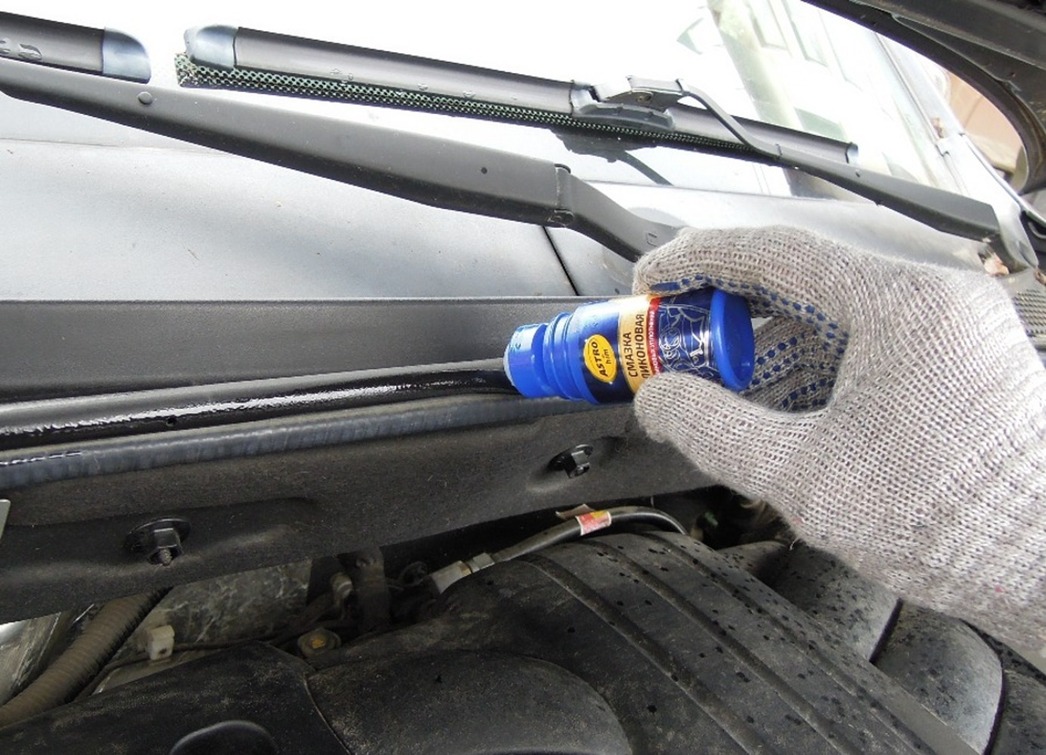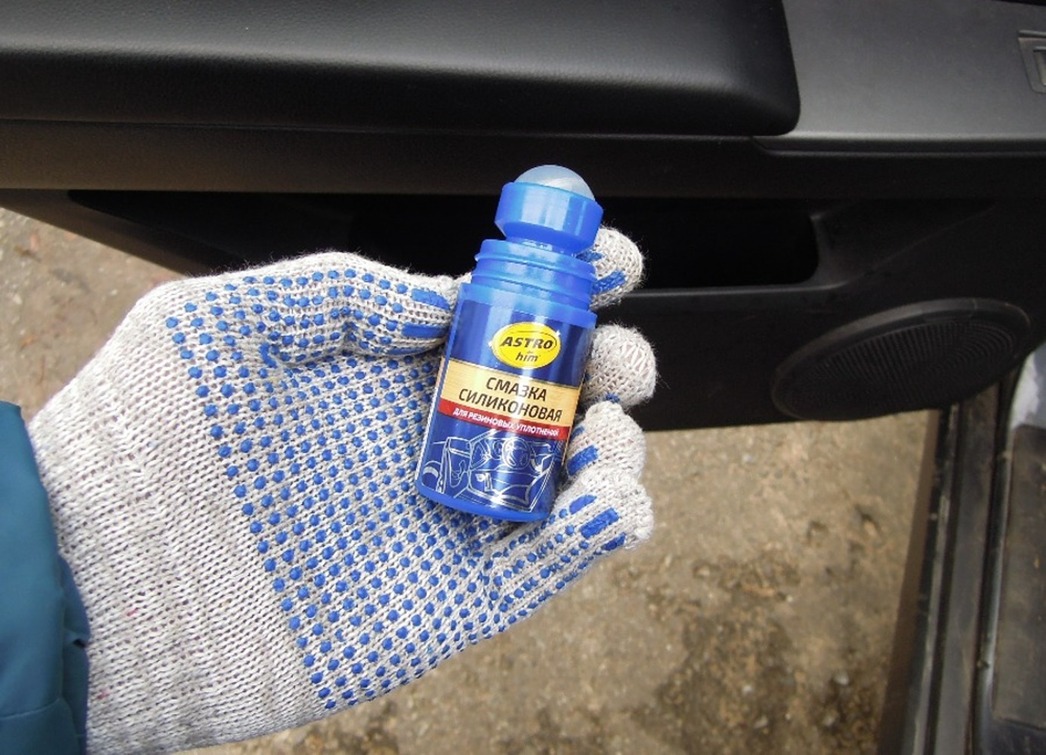 Пока автомойщики «колдовали» над моим автомобилем, я внимательно наблюдал за их манипуляциями. Поэтому обратил внимание на синий карандаш, которым они промазывали уплотнители моего автомобиля. Их «волшебной палочкой» оказалась силиконовая смазка с роликом Astrohim. Потом купил себе такую же в небольшом магазинчике при мойке. Раньше покупал в виде аэрозоля, но эта оказалась значительно удобнее, по сторонам ничего не разбрызгивается.