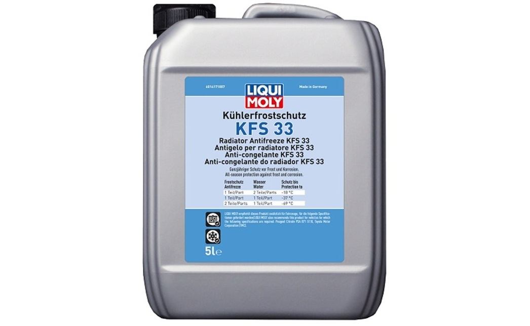 Особое внимание стоит уделить владельцам автомобилей Peugeot, Citroёn и Toyota, где требуется спецификация PSA B71 5110 (G33). Для этих машин подойдет продукт Kühlerfrostschutz KFS 33. Данный антифриз можно смешивать только с антифризом G33 или его аналогами, а менять его нужно раз в 6 лет или через 120 тыс км пробега.