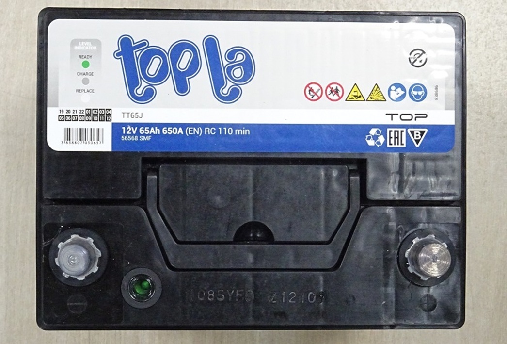 Важная особенность батареи Topla Top JIS 55 Ач — наличие у обоих «тонких» клемм дополнительных кольцевых переходников (фото вверху). Они позволяют при необходимости подключать АКБ к наконечникам «стандартного» размера. Такое конструктивное исполнение существенно расширяет возможности применения данного аккумулятора. Он, в частности, подходит для многих «азиатских» авто малого класса, собираемых на территории СНГ.