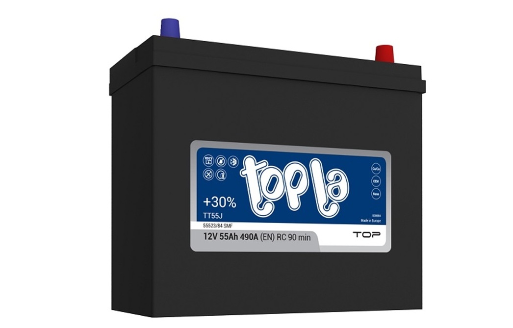 Второй вариант — «тонкий»: тут диаметры клемм составляют 14,7 мм и 13,0 мм соответственно. Они часто встречаются у «японцев» и некоторых «корейцев». Для таких авто Topla выпускает несколько АКБ, в том числе Topla Top JIS емкостью 55 Ач и пусковым током 490 А. Это, кстати, одна из самых мощных стартерных АКБ в своем типоразмере.