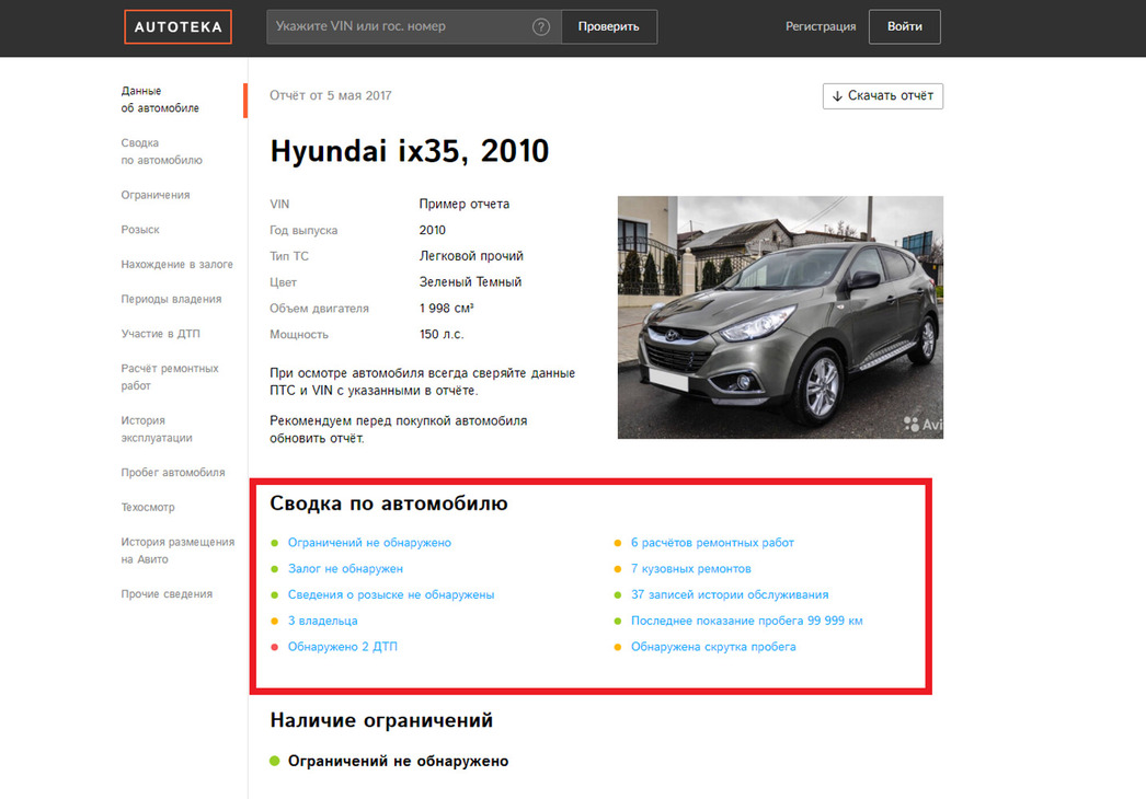 Если раньше покупателям, подыскивающим себе авто в интернете, приходилось верить продавцам на слово, то теперь — вроде как — они могут не беспокоиться за достоверность указанных в объявлении данных: количестве прежних владельцев, «аварийной» истории и юридических моментов. Торговцы указывают в публикации идентификационный номер машины, и сервисы автоматически подгружают информацию, доступную любому желающему.