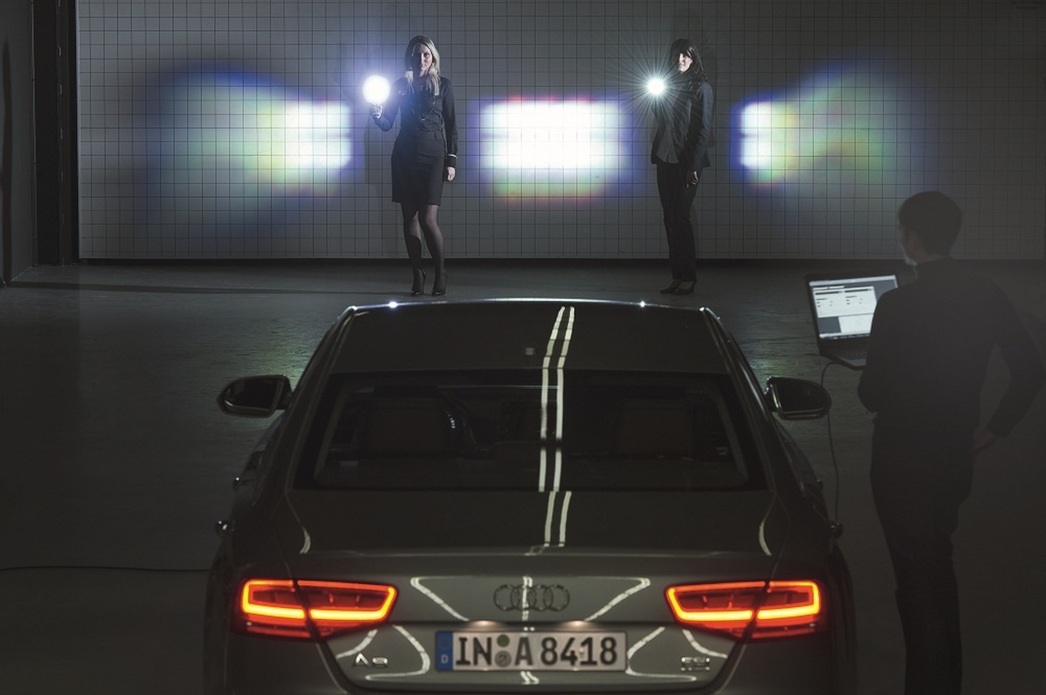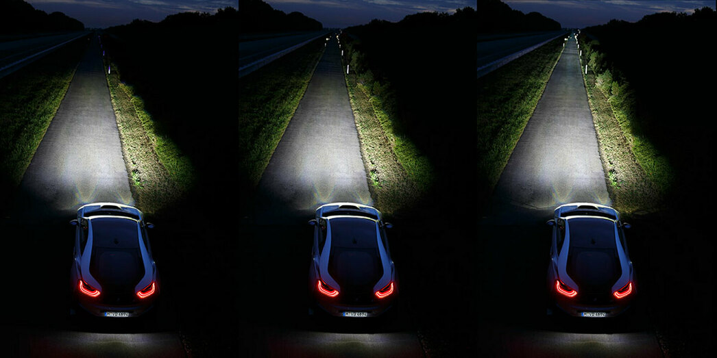Синие лазерные лучи, попадая на специальную пластику, при помощи микрозеркала (Bosch) преобразуются в белые, которые и освещают путь. На малых скоростях фары освещают дорогу вширь, а на больших – «бьют» вперед. По словам производителей, по сравнению с матричными светодиодными фарами «лазеры» имеют большее динамическое разрешение и лучше освещают объекты в темноте. В США эта технология пока не разрешена законом.