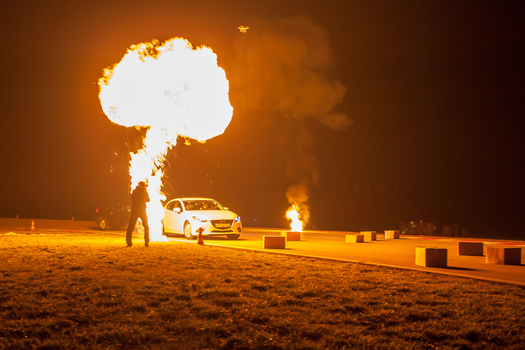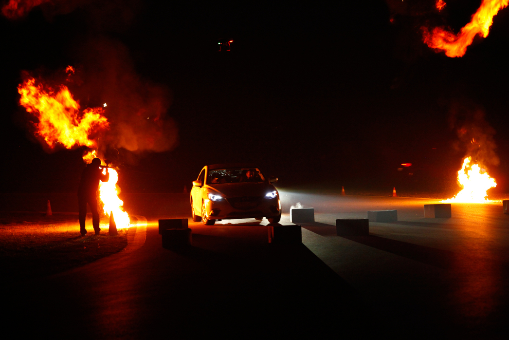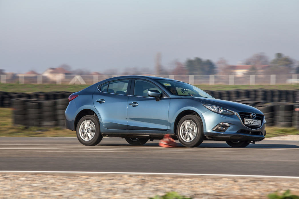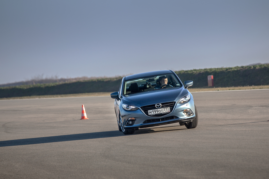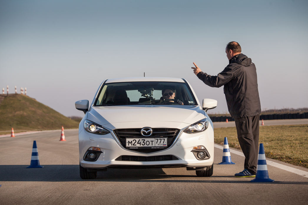 Полицейский разворот, разворот и парковка на ручнике, дрифт и другие упражнения выполнялись на самых обычных, неподготовленных Mazda3 с 1,5-литровым двигателем и на «механике», и на «автомате».